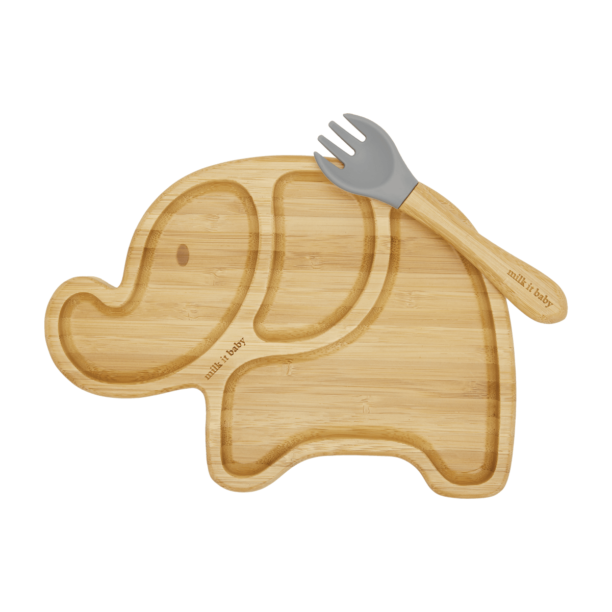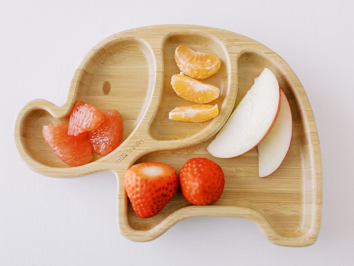Our bamboo plate is composed of a silicone base that sticks to any surface and lets your child enjoy their meal times without making a mess. Hey - as long as the food goes from the elephant trunk and in the tummy, we’ve got ourselves a deal! The elephant plate’s three compartments are perfect for separating food and help parents in creating more balanced meals!