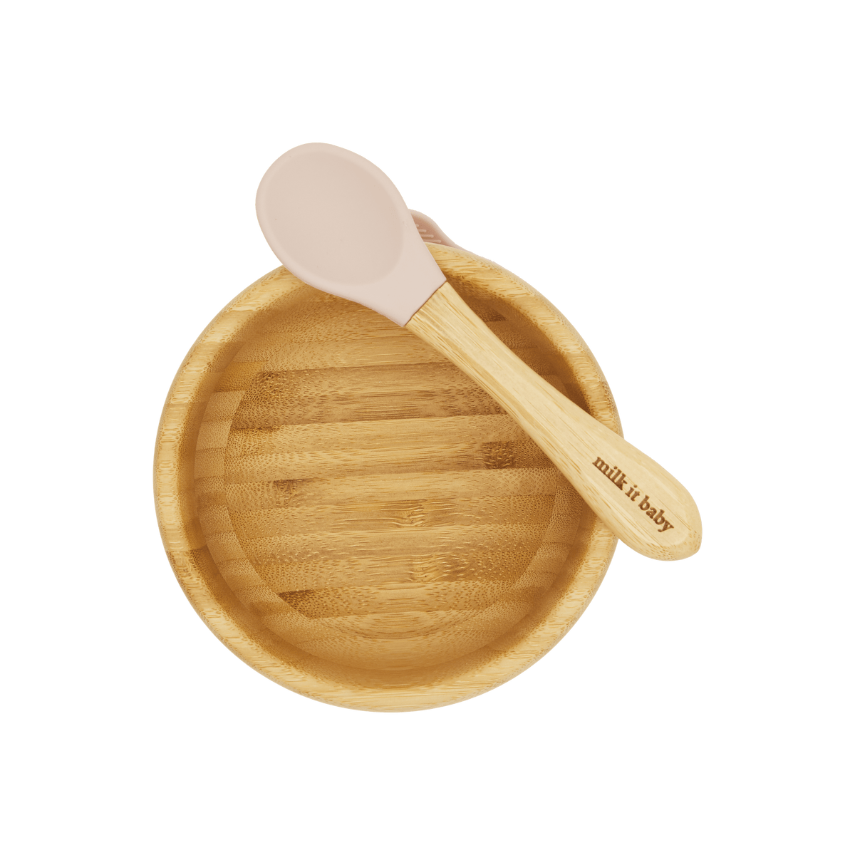 Bamboo Suction Baby Bowl & Spoon - Dusty Pink