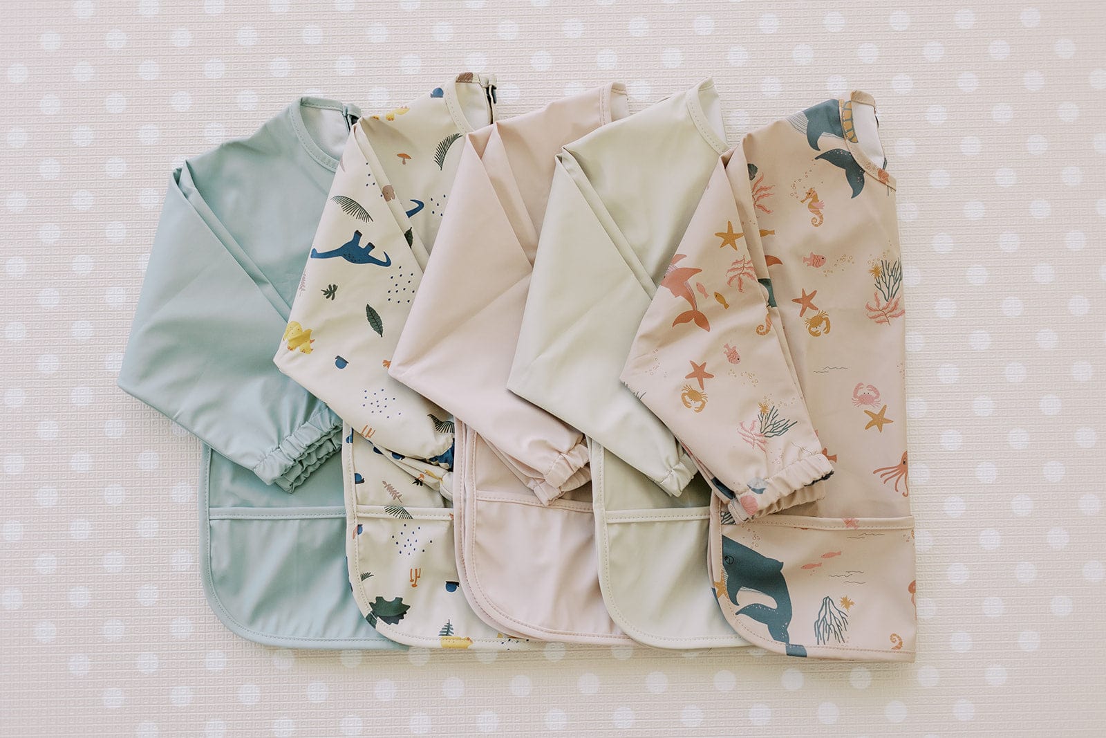 Our Coral Pink Sleeve Bib is kindled by the coral clusters that lie in the whispers of the sea and create a waterfall of blush hues! Its dusty pink colour has a very calm and sophisticated essence that adds a great deal of coziness to this bib! After all, pink is always in season!