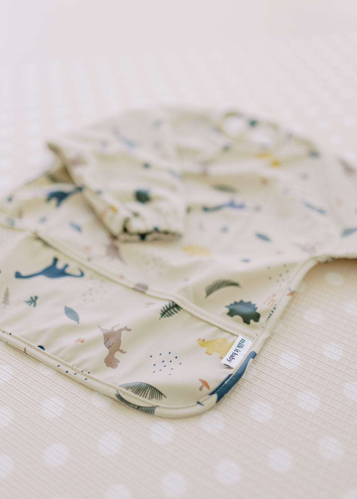Our Dino Dreams Printed Bib Sleeve has a fierce style that radiates a Jurassic park-like setting, perfect for the dino-loving little ones! This dinosaur pattern compiled with an ounce of history makes for a very trendy bib, especially in summer camp! Don’t you worry about all the food dropped on the dinos, they’ve been hungry for centuries!