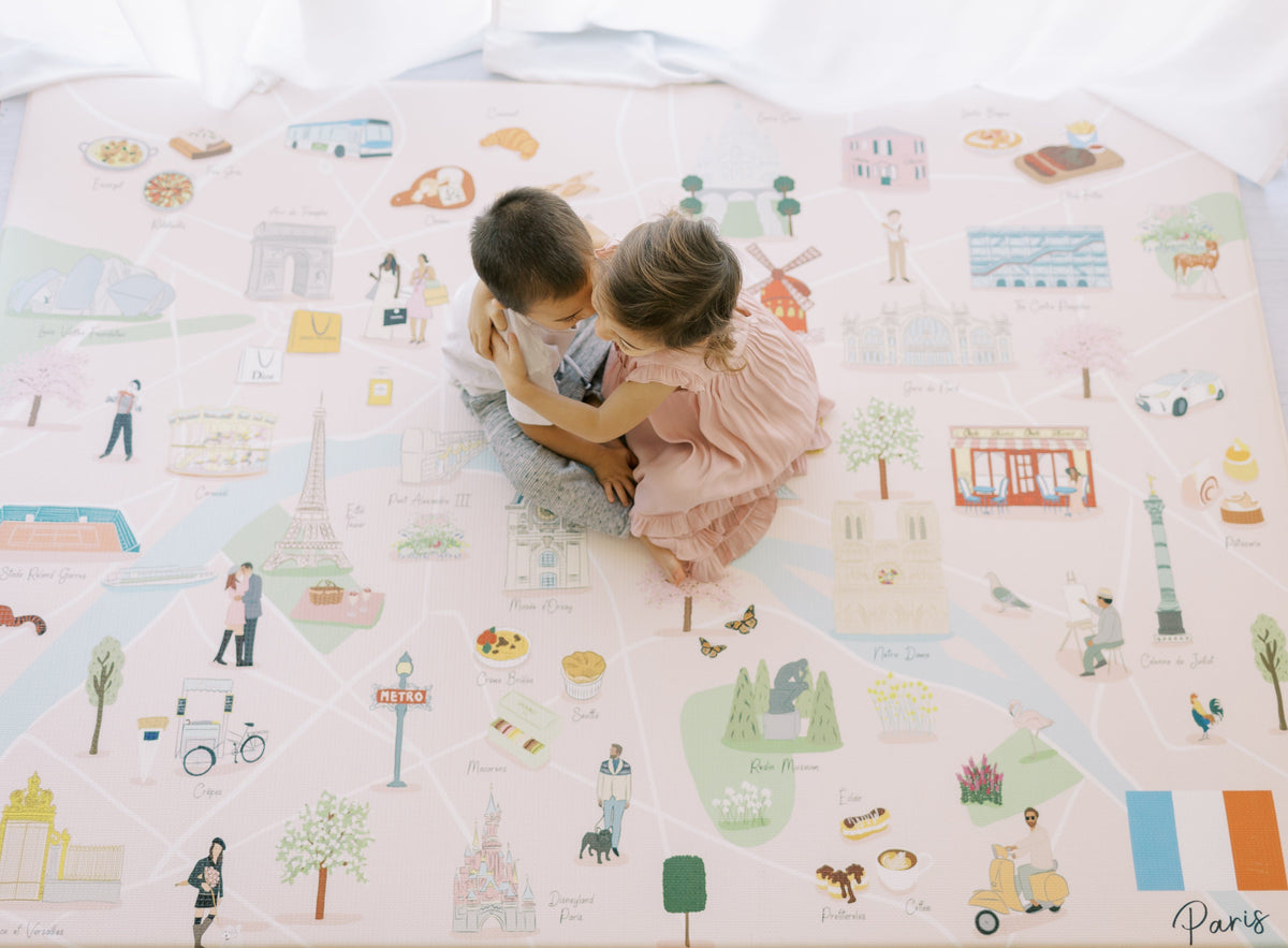 The Paris Play Mat is filled with the city’s finest art and fashion, idyllically designed for mama and baby to go traipsing around cafès, drool over crème brûlées, experience the magic of Disneyland and best of all, see the Eiffel Tower light up! What’s not to louvre about Paris?