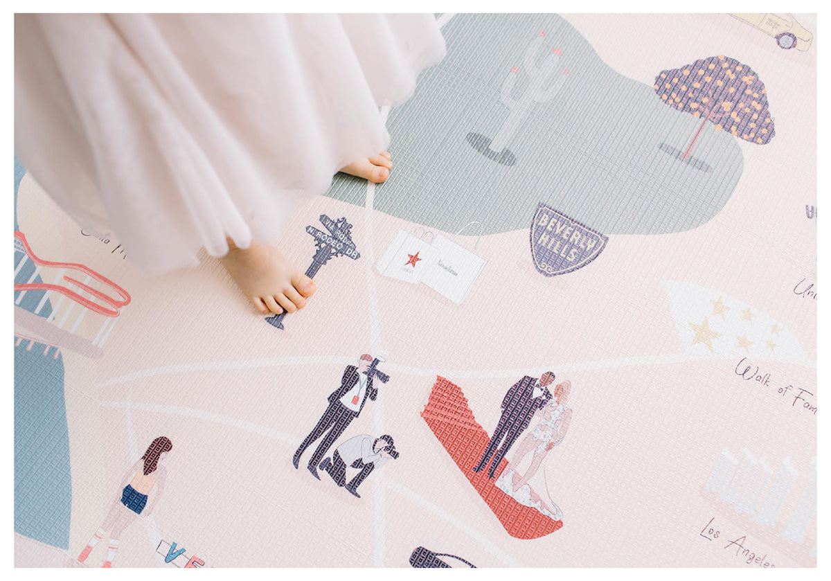 Your baby is strolling down sunny beaches, into sunset boulevard and hanging out in Hollywood all while you sip your coffee in the comfort of your home. Our LA play mat is filled with vibrant colours and iconic celebrities adding a sense of fun, yet style to your living space. Playtime just got trendy, LA trendy!