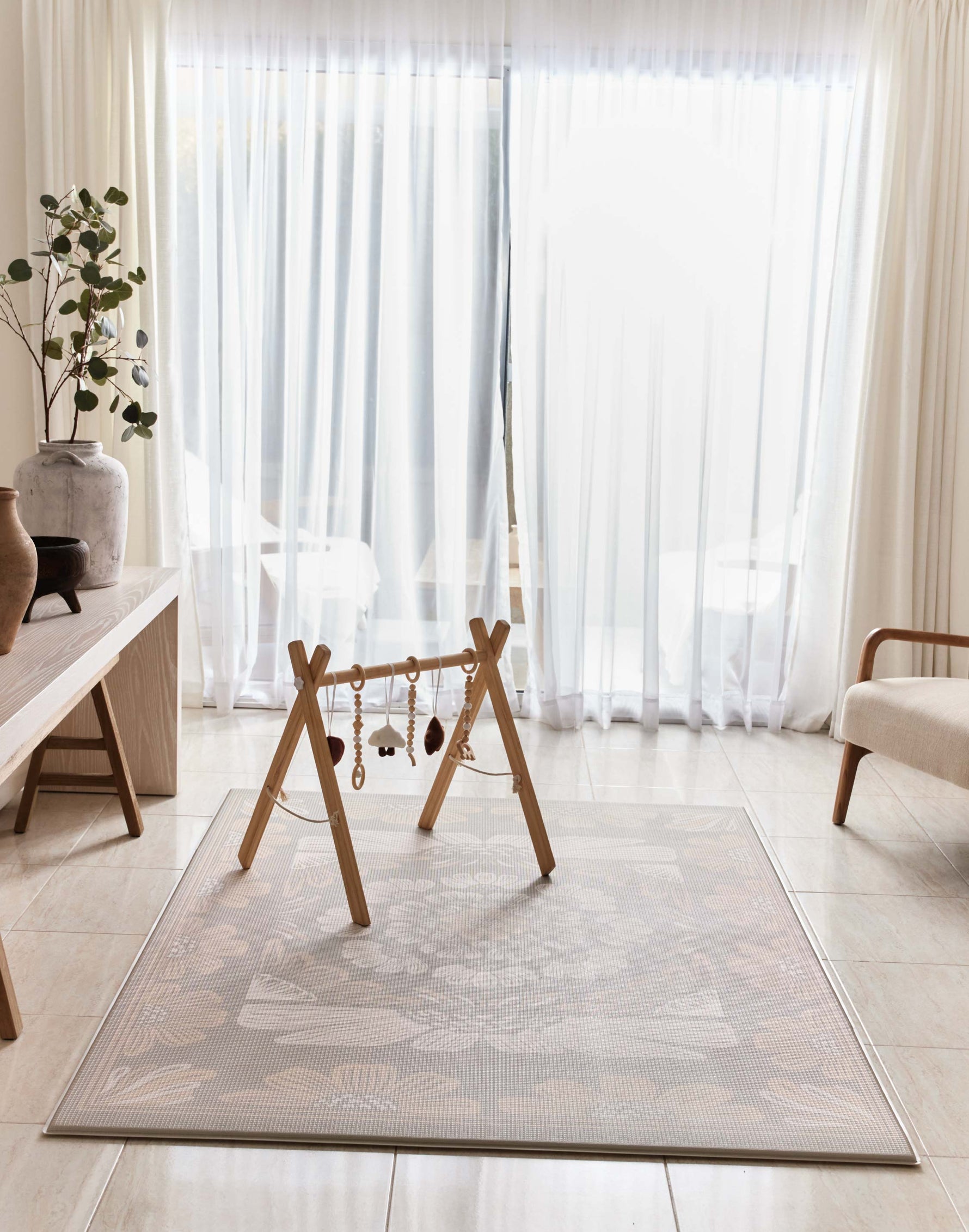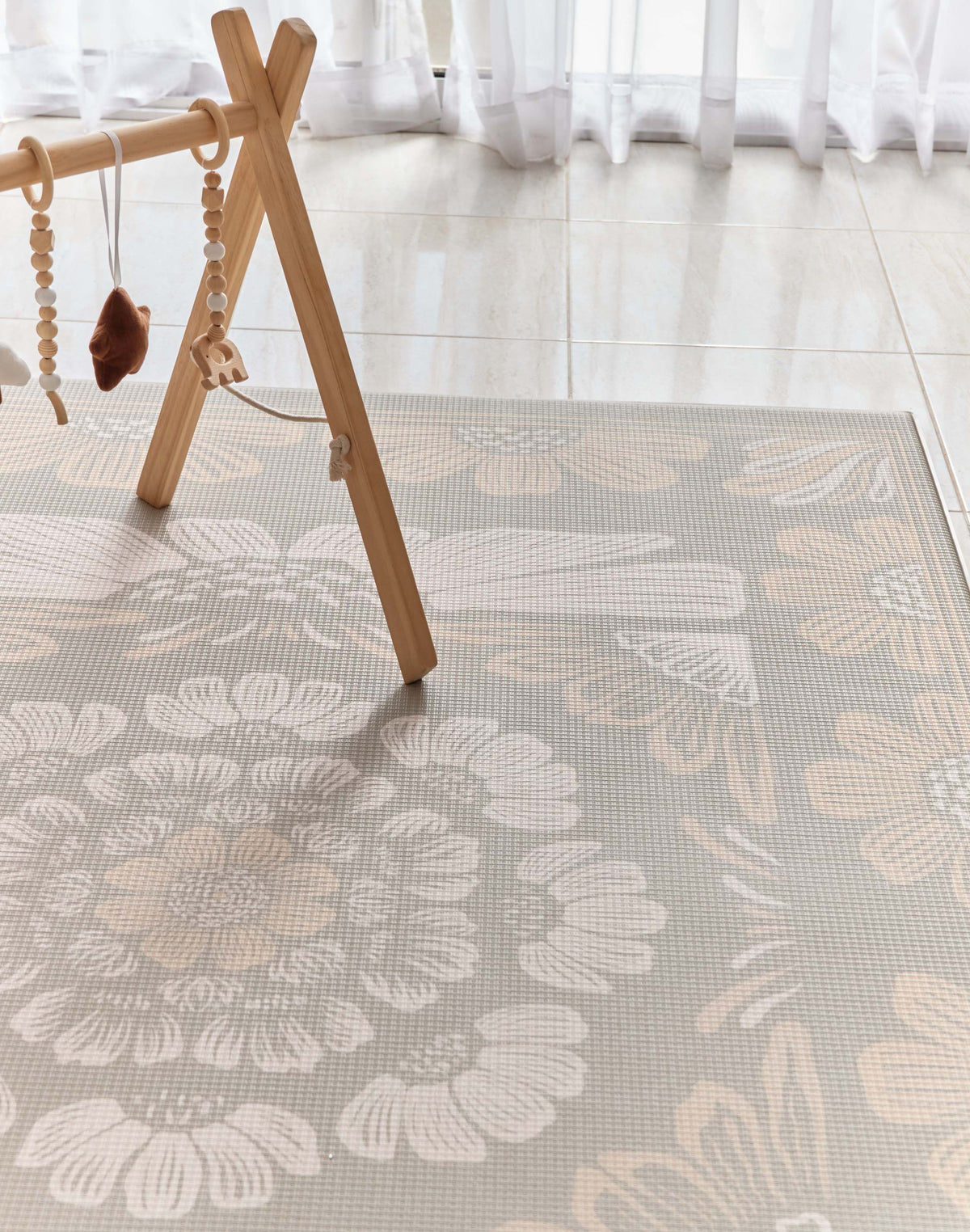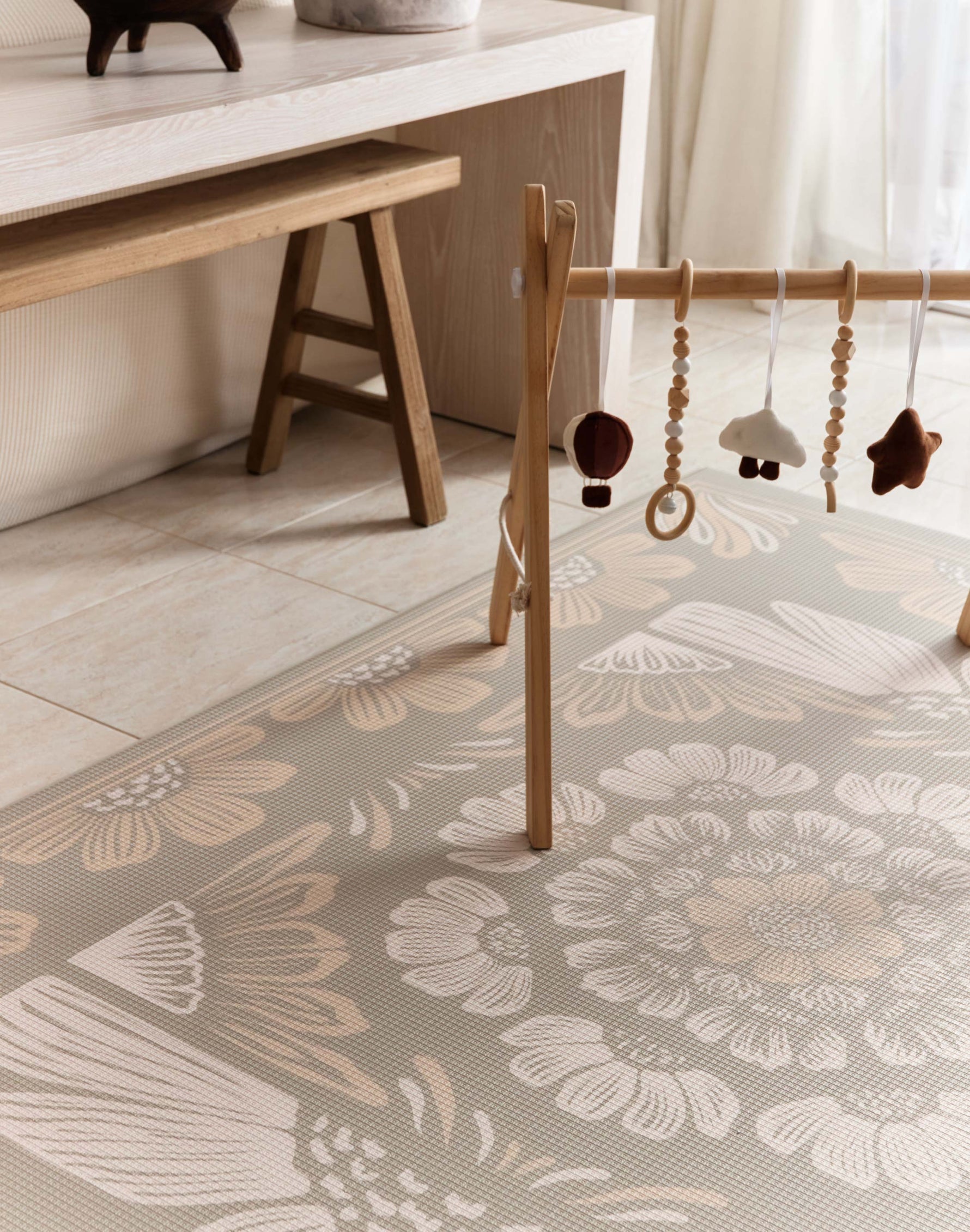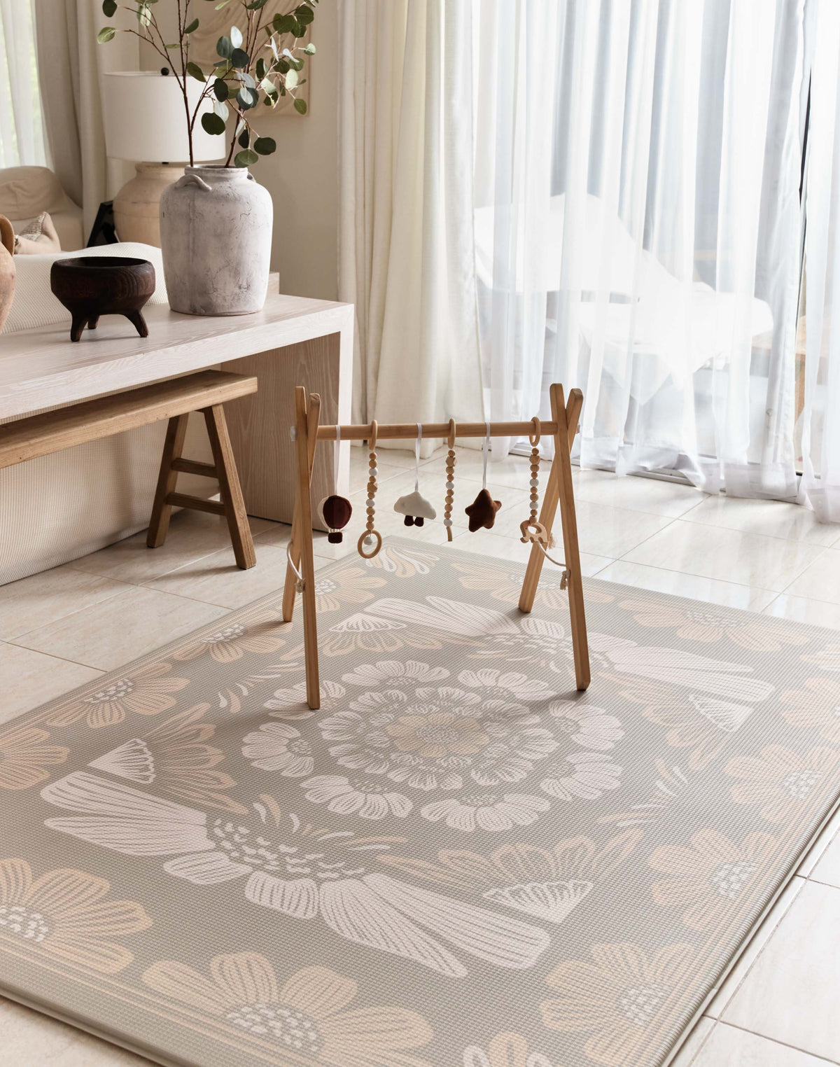 Enhance your home decor with our chic reversible play mat. Designed to look like a beautiful rug, it features a  sophisticated boho design on one side and a charming leafy print on the other. This versatile mat seamlessly integrates into your home decor and is made from high-quality TPU foam, ensuring a soft, safe, and easy-to-clean surface for your baby. Perfect for adding a touch of style, whilst providing comfort to play space.
