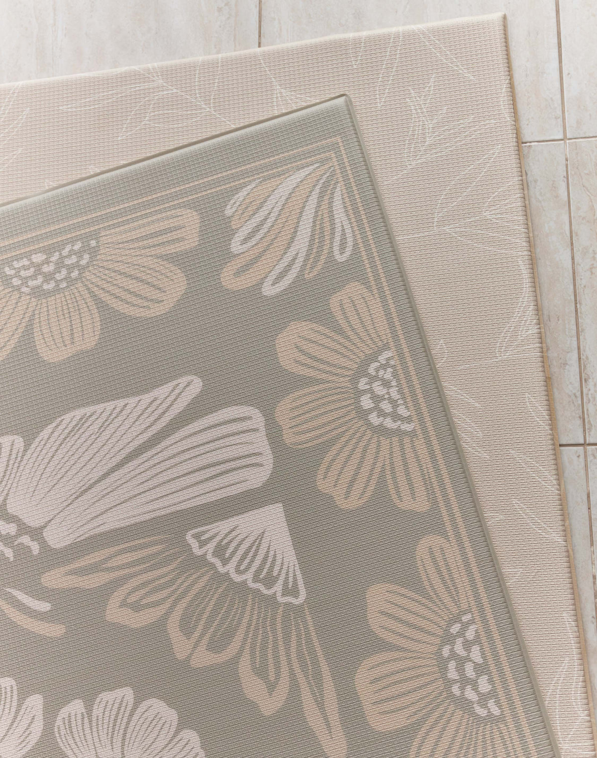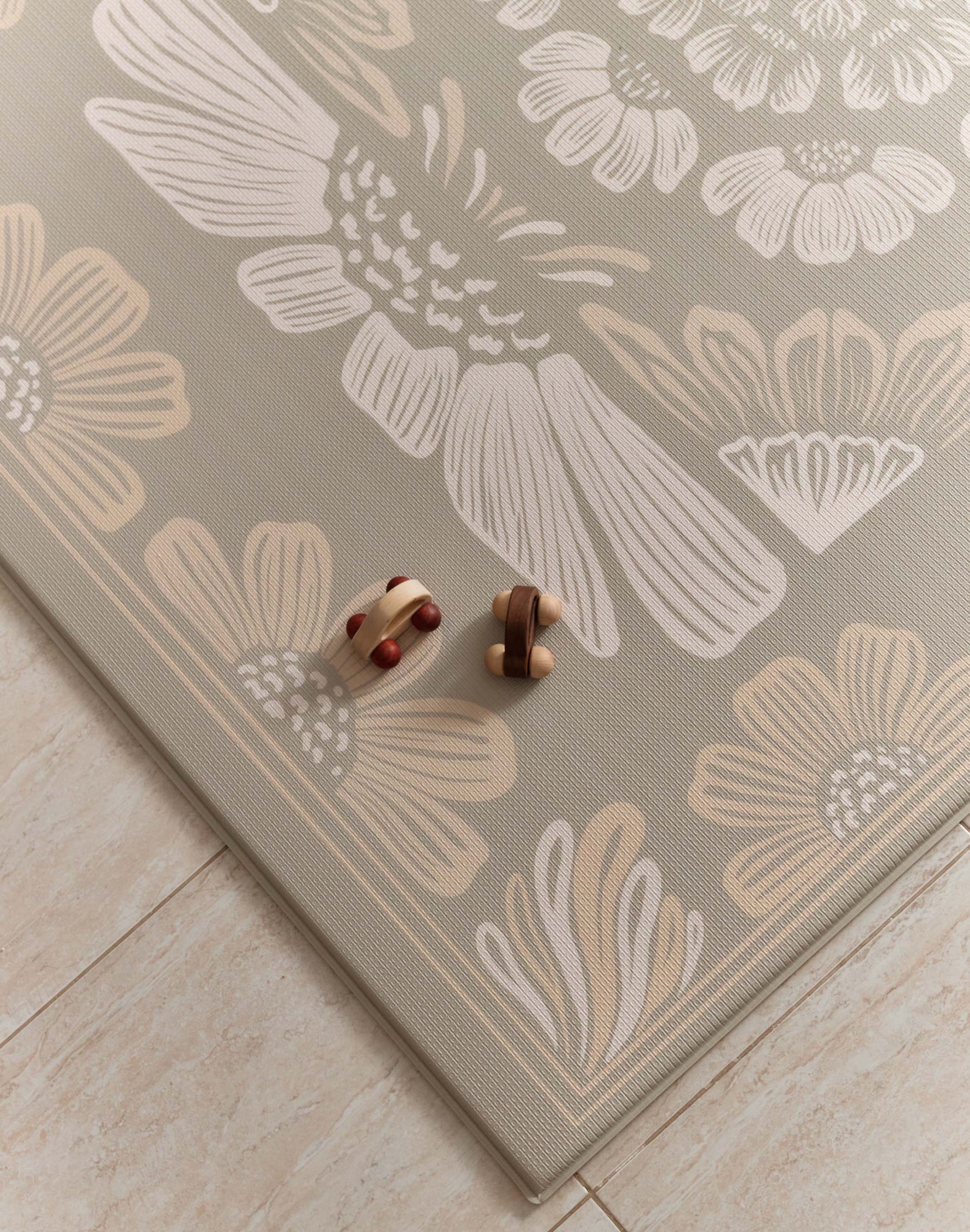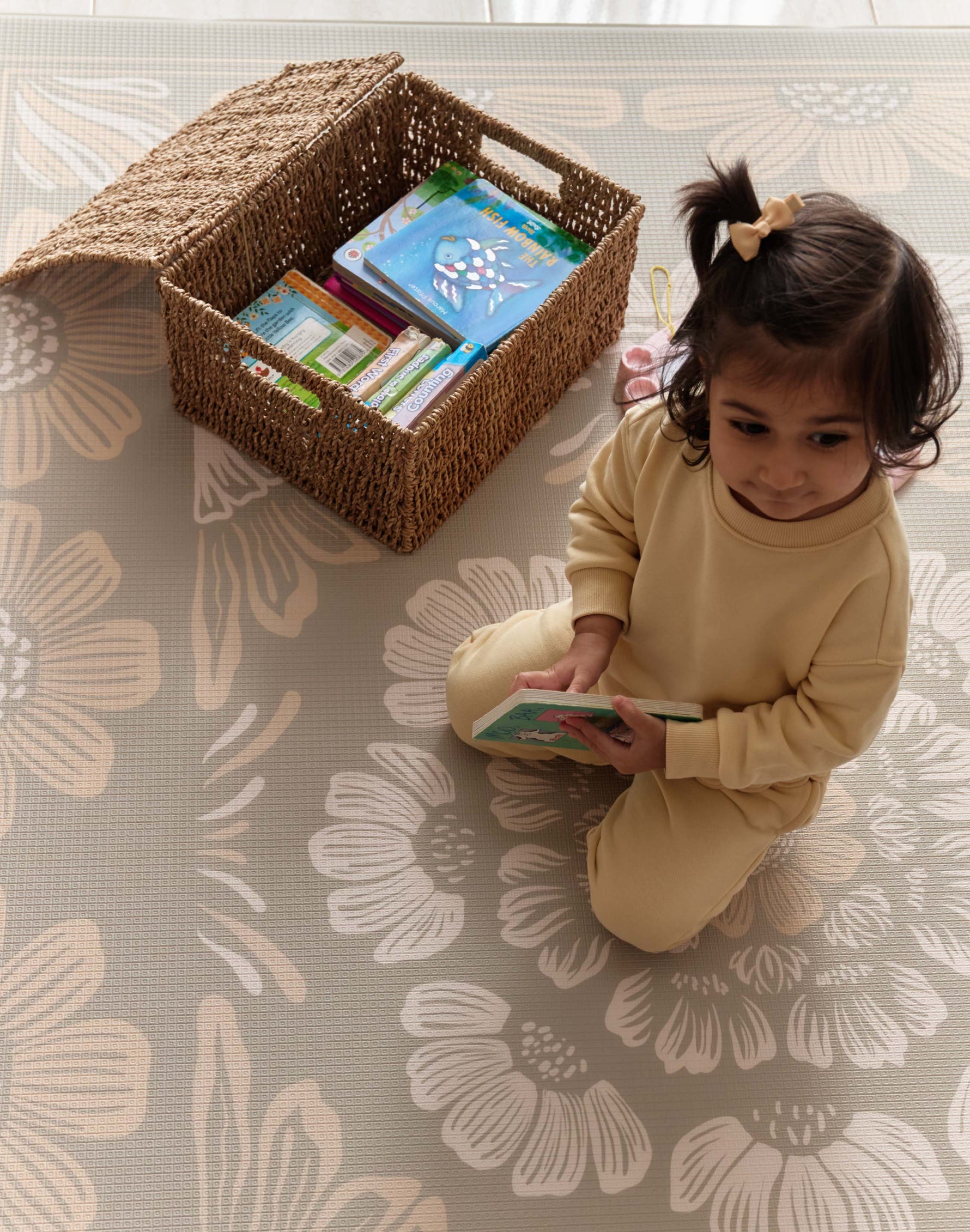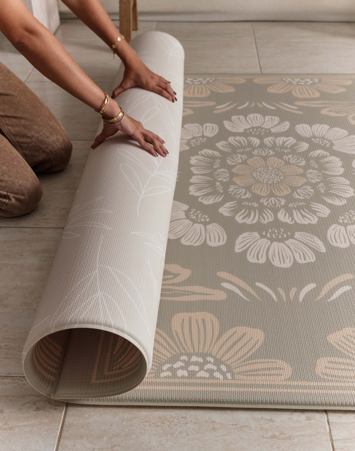 Enhance your home decor with our chic reversible play mat. Designed to look like a beautiful rug, it features a  sophisticated boho design on one side and a charming leafy print on the other. This versatile mat seamlessly integrates into your home decor and is made from high-quality TPU foam, ensuring a soft, safe, and easy-to-clean surface for your baby. Perfect for adding a touch of style, whilst providing comfort to play space.