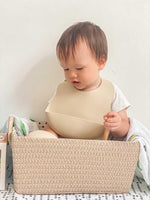 Milk It Baby 矽膠圍兜旨在為用餐時間增添時尚感和美感。我們的 100% 食品級矽膠圍兜有多種柔和的顏色和印花圖案設計。花更少的時間擔心髒亂的餐點和打嗝布意味著有更多的時間享受可愛的餵食樂趣!防溢口袋形狀堅硬,可容納所有凌亂的口水和滴水!圍兜觸感柔軟,還配有可調式頸帶,適合成長中的孩子。圍兜可擦拭乾淨,並且非常容易在洗碗機中清洗。連續用餐的完美且最輕鬆的解決方案。適合 4 個月以上的嬰兒。